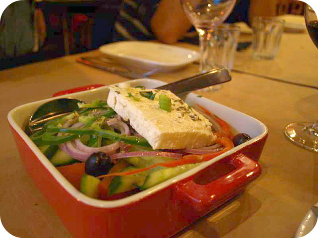 ![]() We first started with mixed dips of tarama (caviar dip), melitazanosalata (eggplant dip), and tzatziki (yogurt mixed with garlic dip) served with an oily pita bread. Yum! ![]()