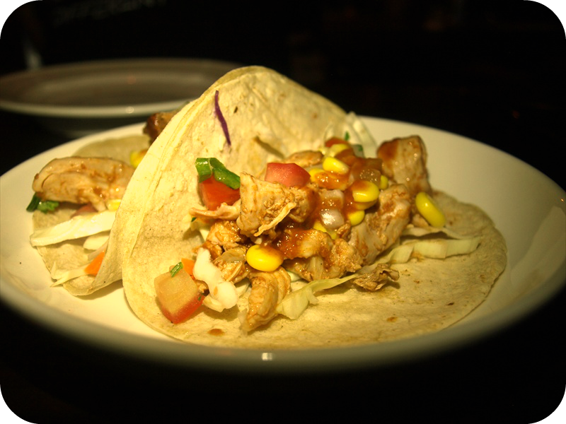 We started with drinks, well ordering them, but they came after the first tacos. Jas had the perfect margarita. Which he loved as he described it as very good. It was a little dry (a good thing), kinda creamy with the egg white and catus syrup, which made it not as sweet as sugar. The only thing wrong with it was that sadly it was not made with love, as the salt that covered the rim was too course and kept falling off. But other than that he loved the creaminess and sweetness of it, balanced well with a slice of lime. Not being a fan of alcohol (it burns!) I had a mocktail (adult word for a bunch of fruit juices shaken, not stirred together), the 'Puebla' $7 - Orange, Apple, Ruby Red Grapefruit, Cranberry Juices, 5 Spice Syrup, Soda. It was very nice. No pictures because, well it doesn't look that fancy. We all know what a mocktail looks like.